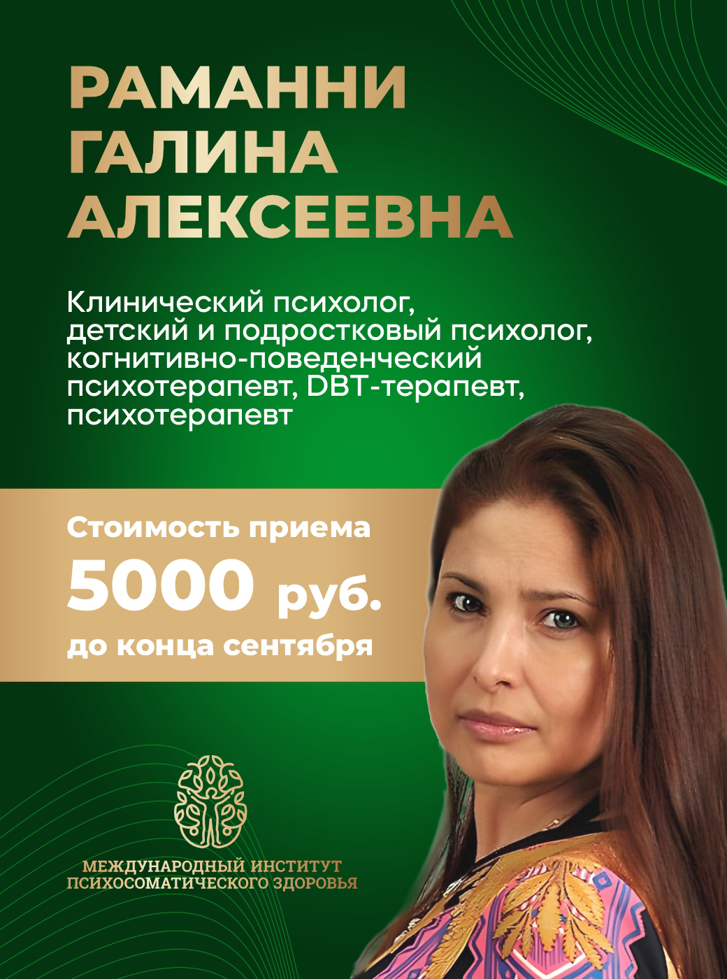 Клинический психолог, детский и подростковый психолог, когнитивно-поведенческий психотерапевт, DBT-терапевт, психотерапевт Раманни Галина Алексеевна