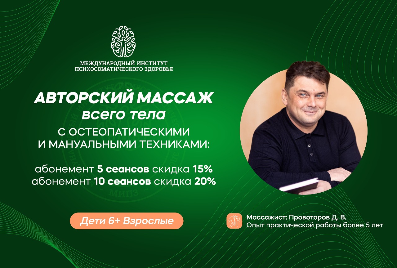 | Авторский массаж всего тела с остеопатическими и мануальными техниками (55 мин.) | 10000 рублей |